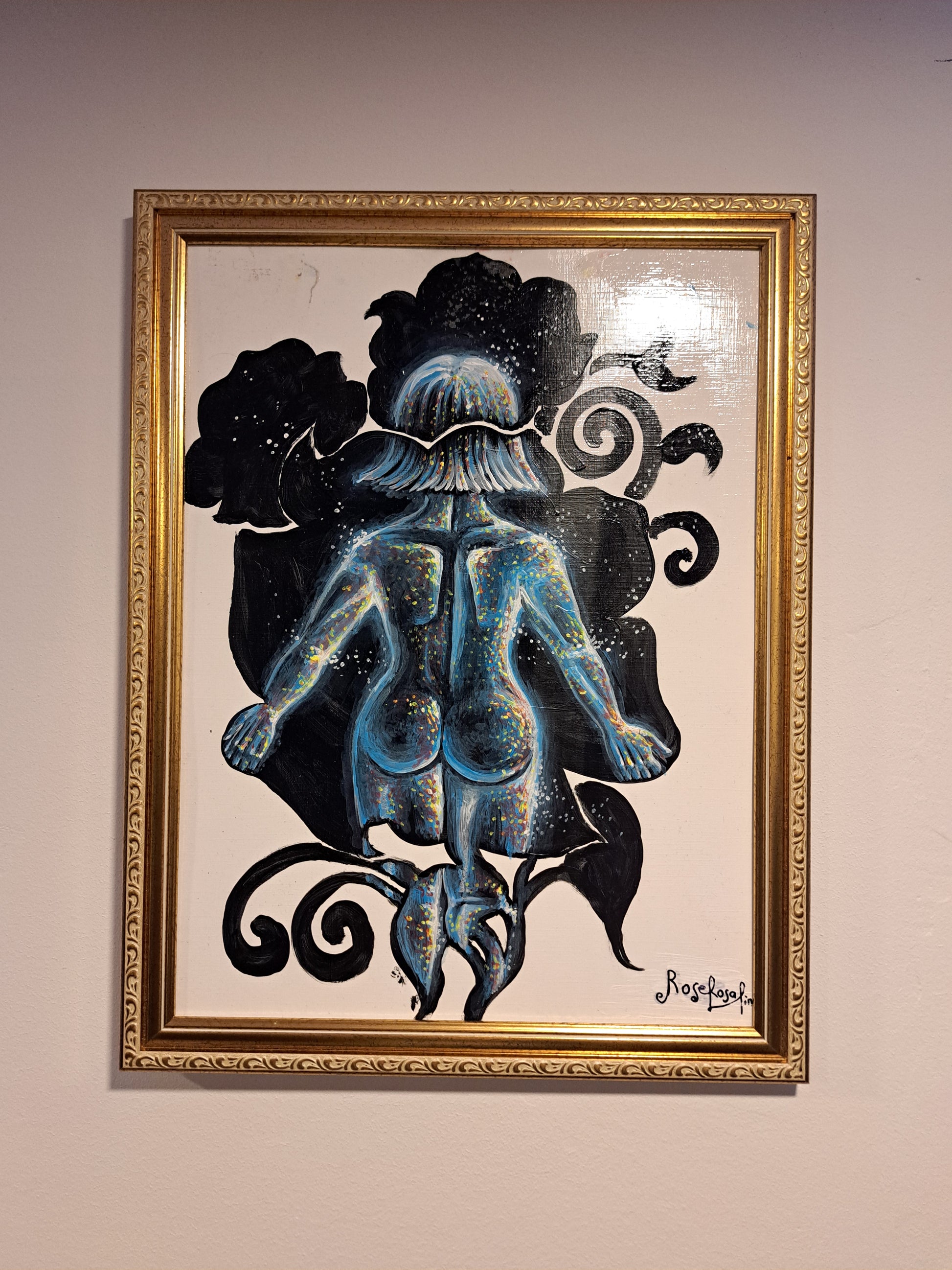 Acrylic on high quality poster, varnished (glossy). Size: 12"X16" (30 cm x 40 cm). The frame is without additional costs. Please let me know if you want the frame.